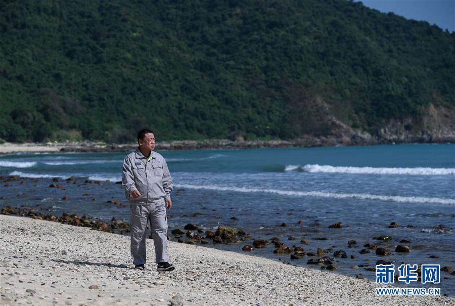 2019年11月20日,乔素凯在海边散步。大亚湾核电站依山傍海,环境优美,乔素凯休息时间喜欢在海边散步。新华社记者毛思倩摄