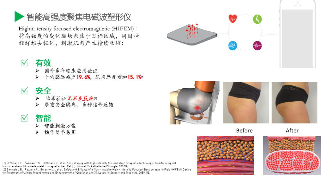 ”我们希望大家’躺平‘就能增肌减脂,智能高强度聚焦电磁波塑形仪是中国第一款增肌减脂仪器。“创始人孙志彬介绍到。智能高强度聚焦电磁波可以将高强度变化的磁场聚焦在需要刺激的人体肌肉组织,产生持续高强度肌肉收缩,从而达到增肌减脂的目的。项目将该技术应用在座椅坐垫中,让消费者在家中或者办公室中坐着就可以锻炼盆底肌和臀大肌,并使用手机APP结合使用者的生理信号实现智能控制和个性化训练方案。