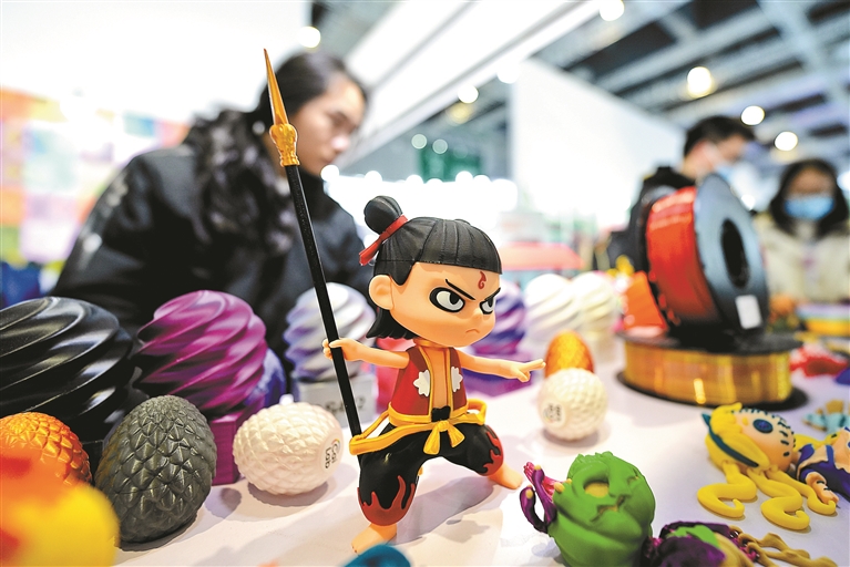 在第十一届亚洲3D打印、增材制造展览会上展示的3D打印的哪吒工艺品。新华社发