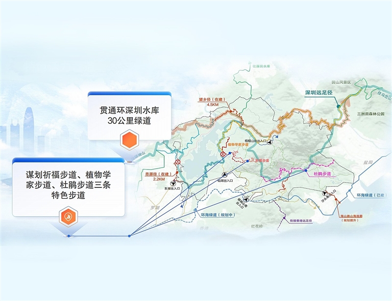 深圳市多部门联手,将从生态、交通、产业、风貌等方面实现这幅蓝图。生态方面,深圳市探索打通深圳梧桐山-香港红花岭之间的生态走廊。