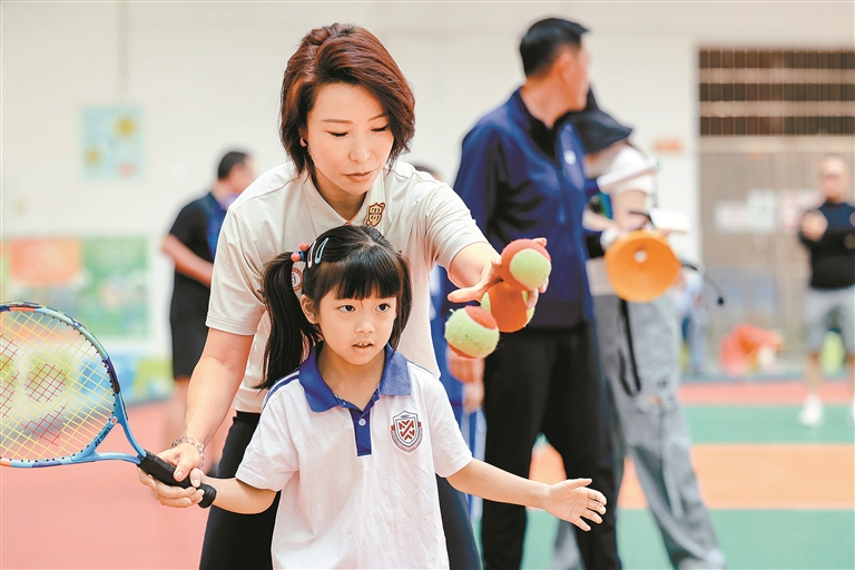 深圳新闻网2025年10月28日讯(深圳特区报记者 赖犁 摄)日前,中国网球协会副主席、网球世界冠军郑洁女士来到福田区外国语小学,为这里的孩子们带来了一堂别开生面的公益网球课。郑洁耐心细致地示范网球技术动作,指导孩子们练习,课后与学生们进行了面对面深度交流,鼓励孩子们勇敢、自信地投入到运动中去。