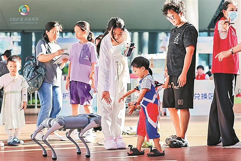 活动现场设立了“护苗成长区”“科技畅想区”“共护相伴区”三大主题区域,腾讯、华为、平安、荣耀、腾讯音乐、拓竹科技等企业汇聚一堂,秀出前沿创新成果,点燃了孩子们好奇的目光。