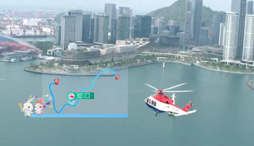直升机绕前海眺望香港