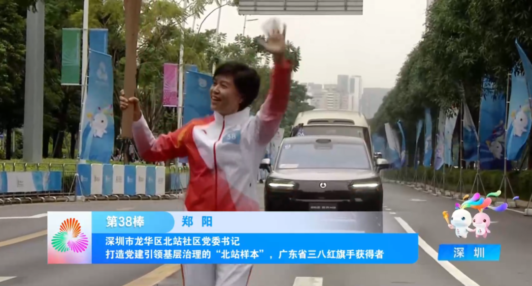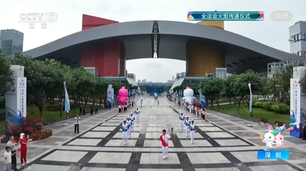 晨光中,火炬的传递从市民广场出发。从市民广场至莲花山公园,约1公里的地面传递全是“流金岁月”。火炬手跑过的每一步,都踩在 “春天的故事” 的回音壁上。