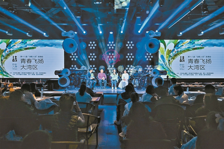 “诗歌人间”对谈环节,嘉宾们围绕“粤港澳大湾区文学生态的互促共融”主题展开交流。 深圳特区报 记者 胡蕾 摄