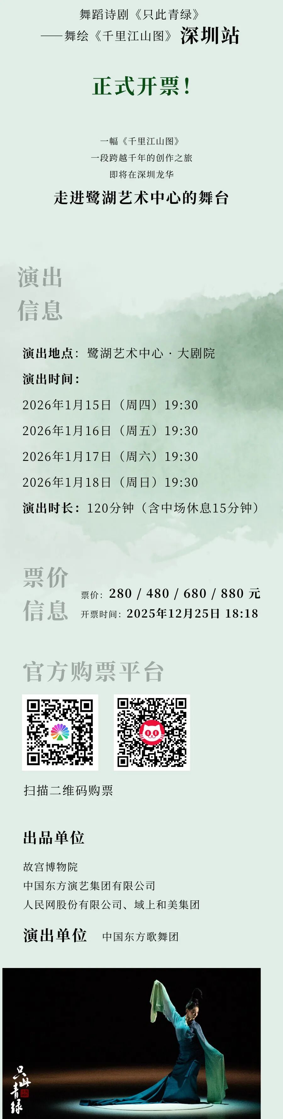 国宝级舞蹈诗剧《只此青绿》深圳站,开票了!
