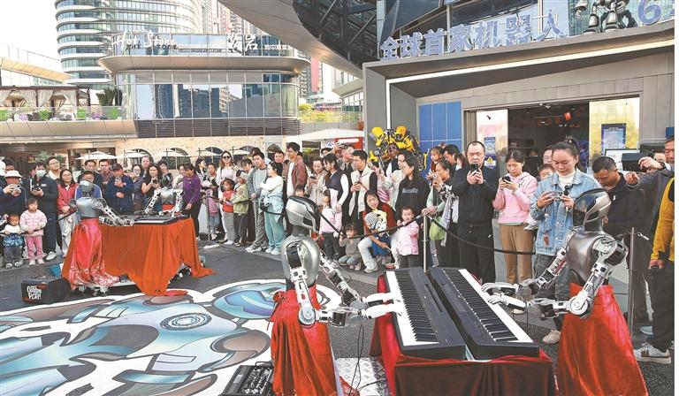 深圳新闻网2026年1月2日讯(深圳特区报记者 罗实宜/文 李忠/图)1月1日上午,龙岗区坂田街道雅宝星河CocoPark星空广场热闹非凡,全球首家机器人6S店联合龙岗区人工智能(机器人)署,共同举办的全球首个“人机元旦节”正式拉开帷幕。这场以“未来同频·人机共生”为主题的活动,将持续至1月3日。