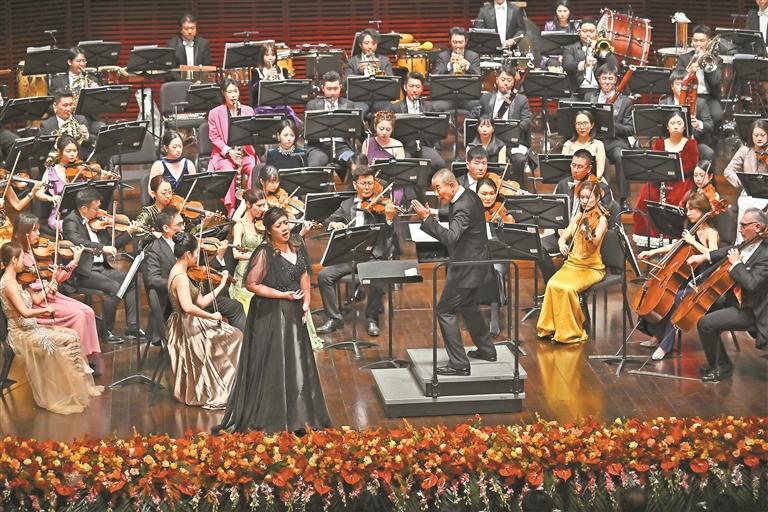当晚19∶30,“2026深圳新年音乐会”于深圳音乐厅率先启幕。本场音乐会由深圳交响乐团荣誉首席指挥、国际音乐大师谭盾执棒,汇聚女高音钟嘉欣、马头琴演奏家哈斯巴根,携手深交小提琴演奏家吴倩、大提琴演奏家卡伦·科恰良、竖琴演奏家彭佳及其童声合唱团,共同呈现一场植根传统、胸怀世界的交响盛宴。