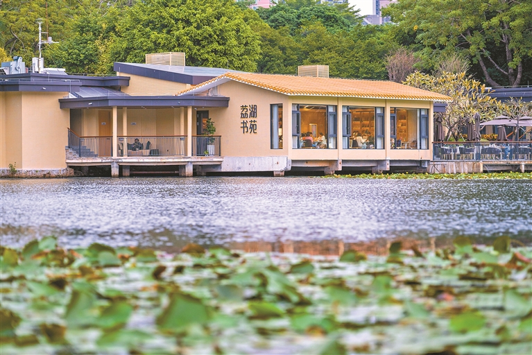 荔枝公园荔湖书苑坐落在湖边。