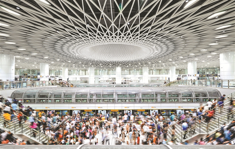 岗厦北地铁站内人潮涌动。 深圳报业集团记者 陆颖 摄