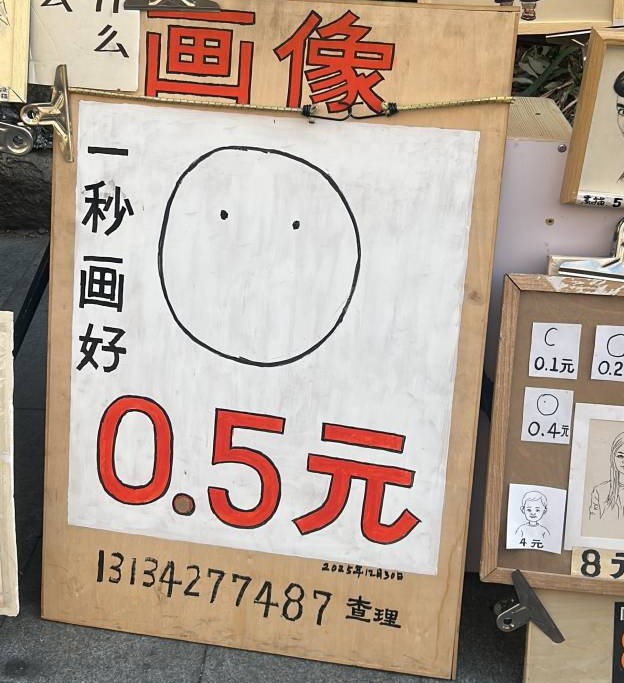 “那就换个玩法!”他灵机一动,开创了“0.5元绘画系列”,主打一个“给多少钱,办多少事”。