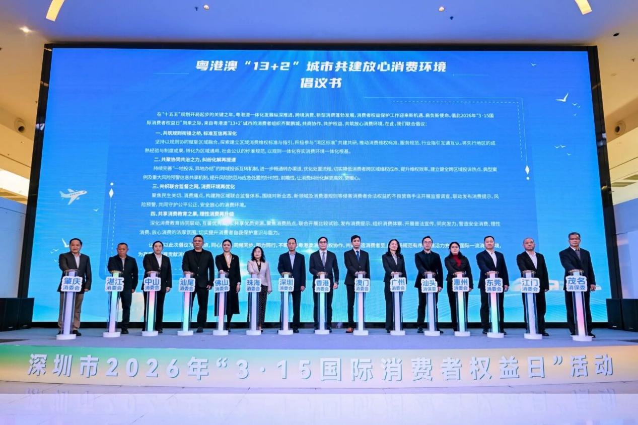 深圳新闻网2026年3月16日讯(记者 田志强)近日,深圳市围绕“提升消费品质 乐享美好生活”主题举办2026年“3·15国际消费者权益日”活动。会上,发布了酒店住宿行业315消费通经营者投诉处理指数排行榜等4项内容;开展“粤港澳‘13+2’城市共建放心消费环境倡议”等3项活动。