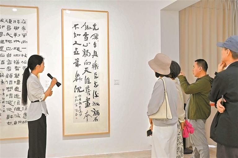 “美美与共——全国美术馆书法邀请展”策展助理孟可心为观众进行导览。